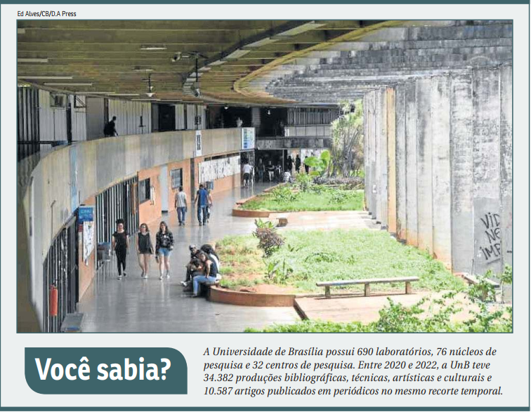 A história da capital e da Universidade de Brasília (UnB) se en trelaçam. Brasília tinha apenas dois anos de existência quando a instituição de ensino superior foi fundada, em 21 de abril de 1962. A construção da universidade foi norteada pelas ideias do antropólogo Darcy Ribeiro, pelo modelo pedagógico do educador Anísio Teixeira e pelos traços do arquiteto Oscar Niemeyer. “Eram mais de 200 sábios e aprendizes, selecionados por seu talento para plantar aqui a sabedoria humana”, escreveu Darcy Ribeiro, na publicação A inven- ção da Universidade de Brasília, em 1995. Com 61 anos de história, a UnB contribui para que Brasília seja um celeiro da ciência e do saber.